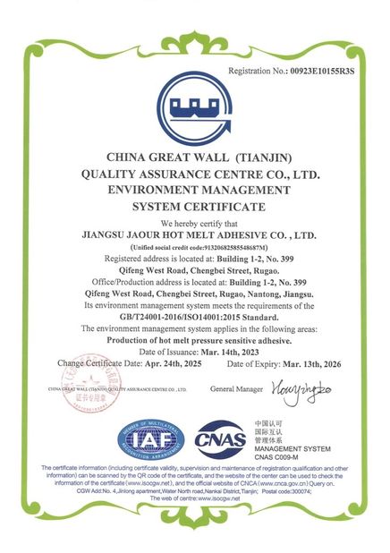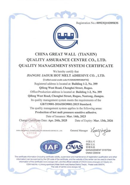 • จีน Shanghai Jaour Adhesive Products Co.,Ltd การรับรอง